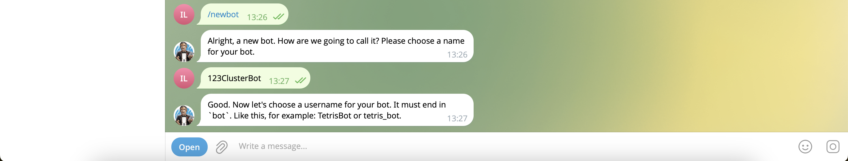 In order to receive notifications in Telegram, we need to connect 123 Cluster environment with Telegram API.